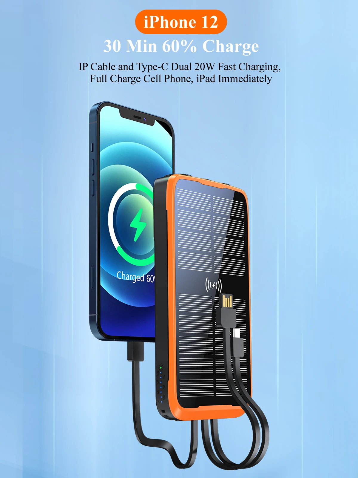 New Product Ideas 2024 Electronics 20000mAh Wireless Fast Charge Built In Cable Portable Power Bank For Outdoor Solar Power Bank