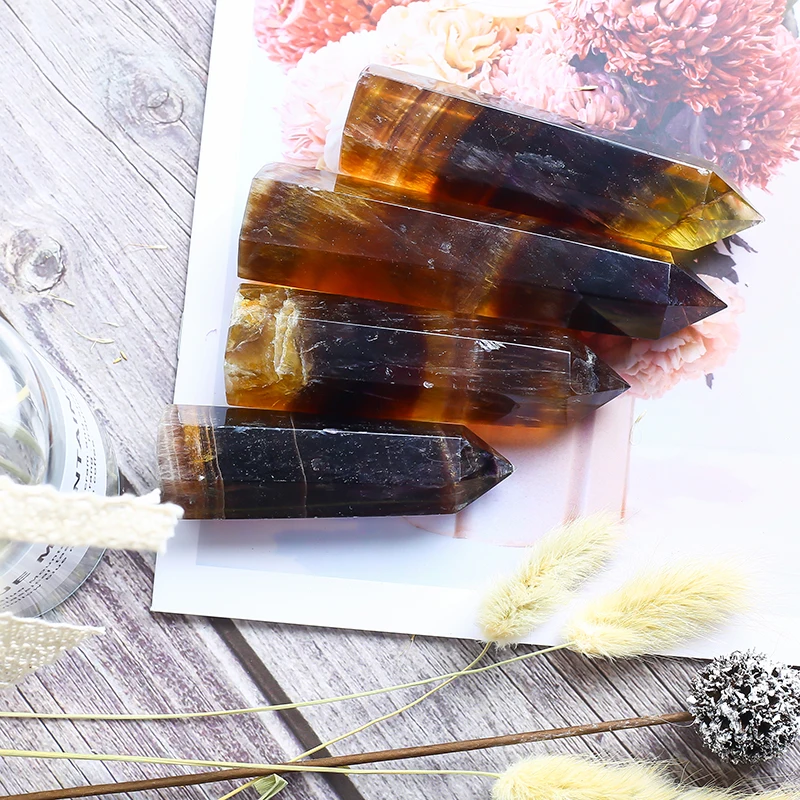 Wholesale Healing Gemstone Point Natural Yellow Fluorite Wand Crystal Point For Decoration